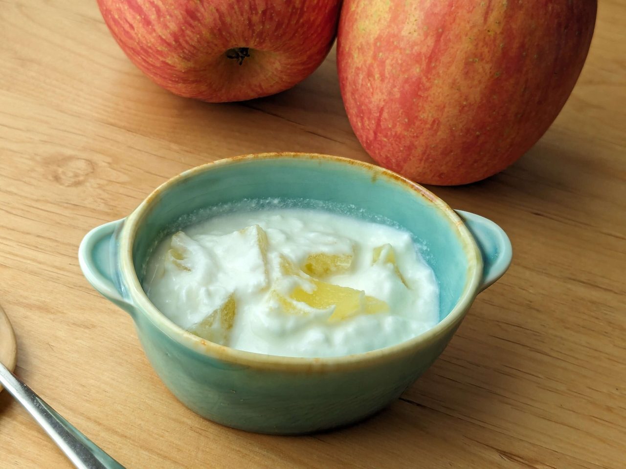 여기에서는 「삶은 사과를 곁들인 요구르트 애」를 소개하고 싶습니다.